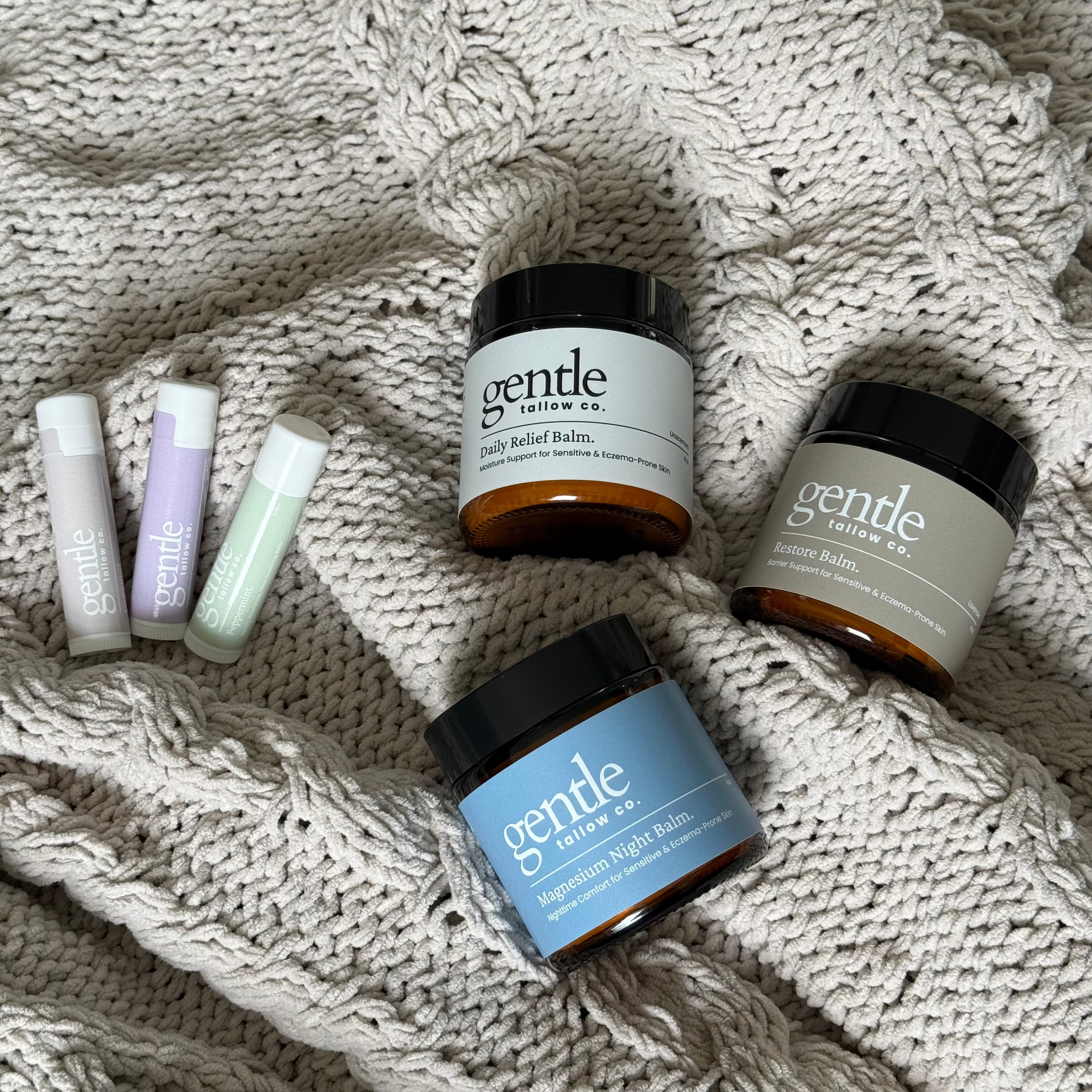 We currently offer 3 tallow balms — plus our Tallow Lip Balms — with plans to keep growing our collection.