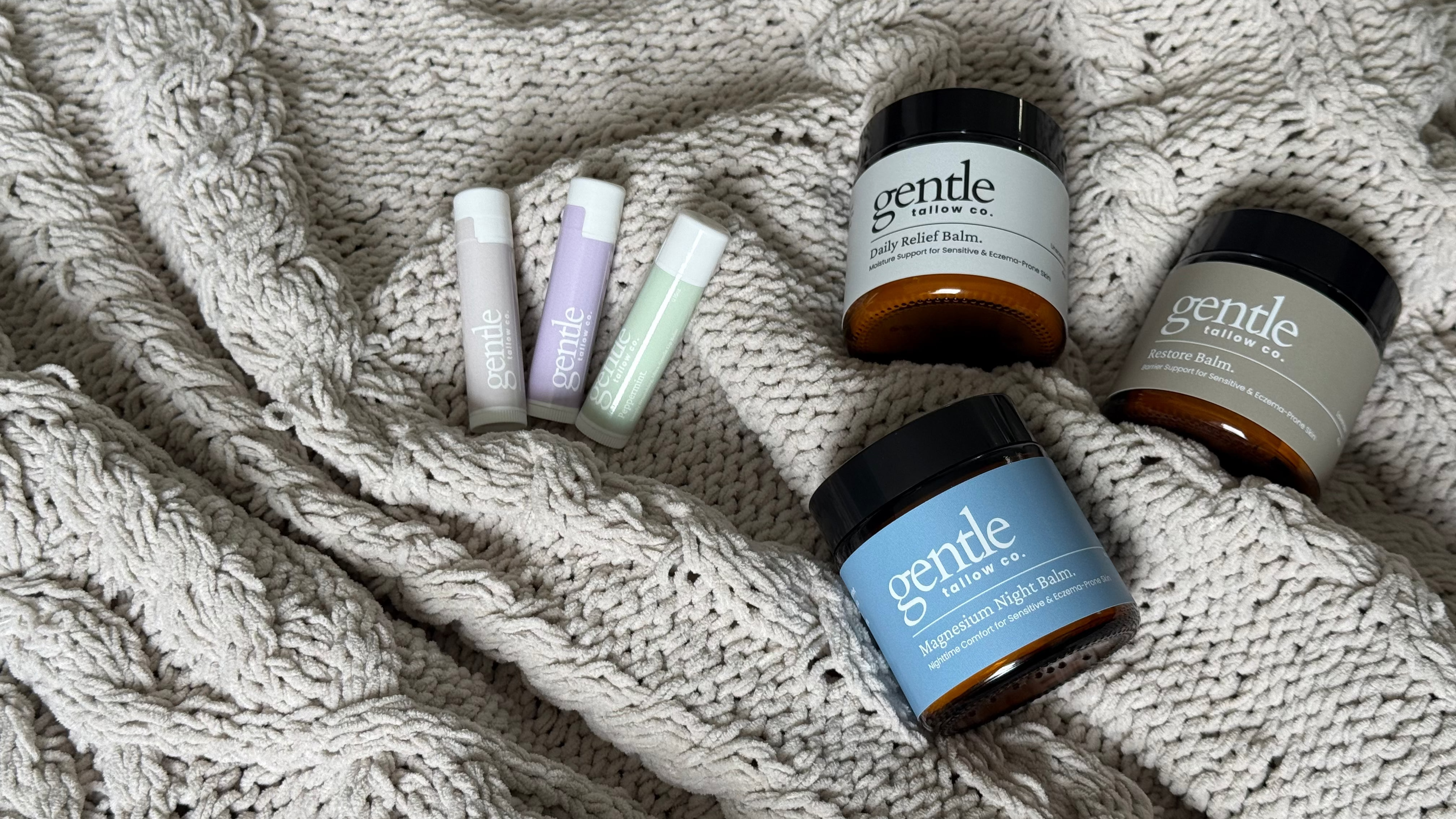 At Gentle Tallow Co, our tallow balms are designed with one clear purpose: to bring real relief to eczema-prone and sensitive skin. While they are versatile enough for daily use from head to toe, every formula is crafted to support the unique needs of irritated, inflamed, and barrier-damaged skin. Use it as your daily facial moisturizer, an all-over body balm, or apply it directly to dry, itchy patches whenever your skin needs extra care.